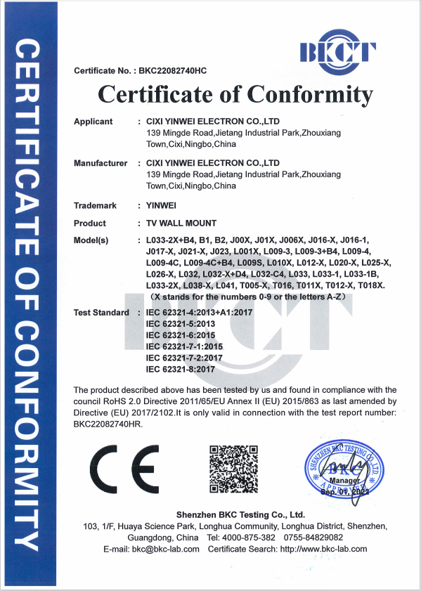 Cixi Yinwei Electron Co., Ltd wurde 2008 gegründet und ist heute einer der führenden Hersteller in Ningbo China im Bereich Plasma und LCD/LED-TV-Halterung. Unsere Produkte decken jetzt 10 Serien, 200 Arten mehr mit Hilfe von 10 Ingenieuren und 7 Mechaniker experten ab und machen sie immer auf dem neuesten Stand der Innovation. Unser Design kann die anspruchs vollsten Kunden anziehen.